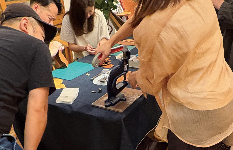 コインケースのカシメをする手元がまるで職人のソレですね。